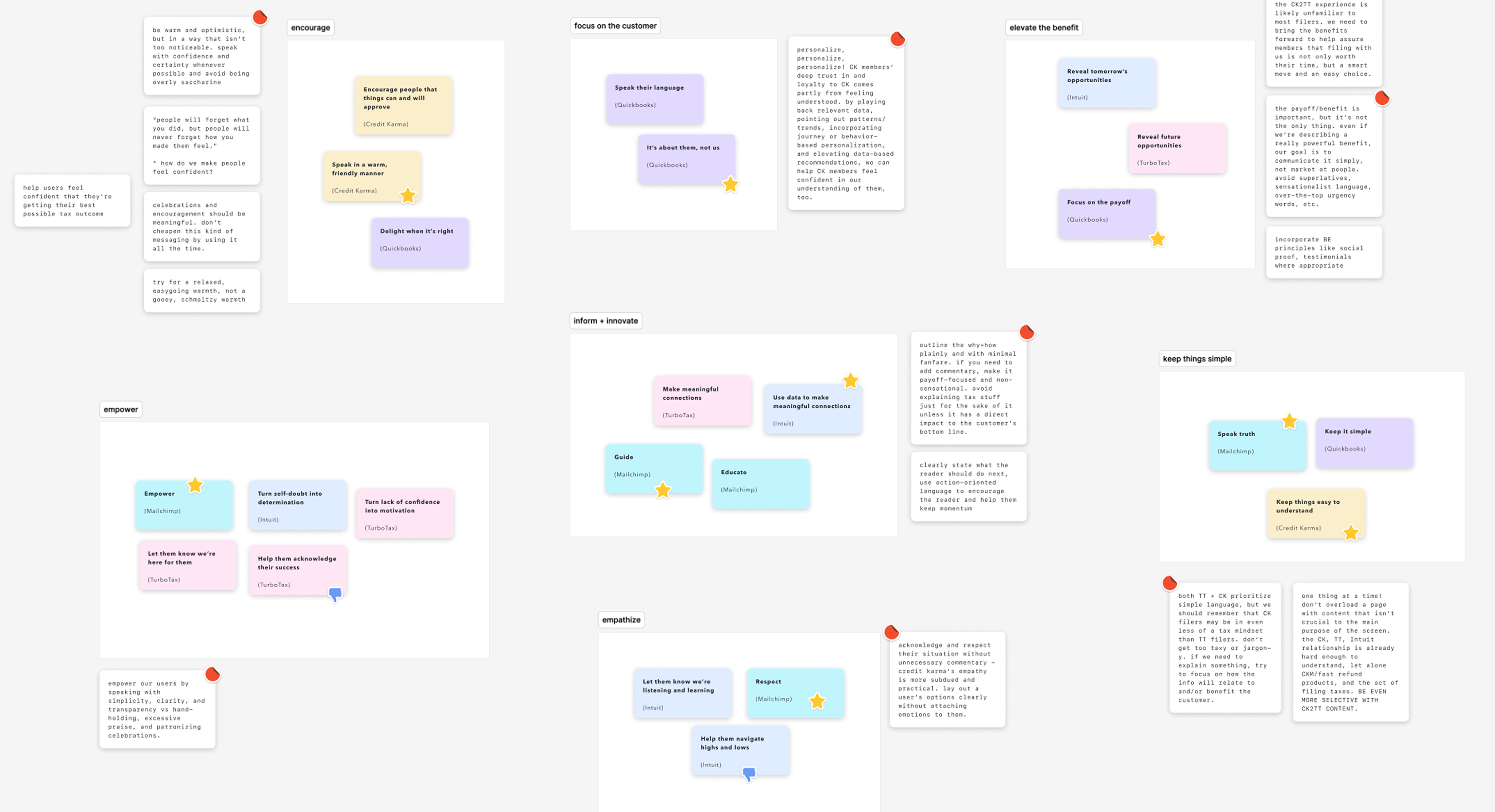 Analyzed voice across Intuit sub-brands (Credit Karma, TurboTax, QuickBooks, Mailchimp) to find opportunities for deviation and alignment.