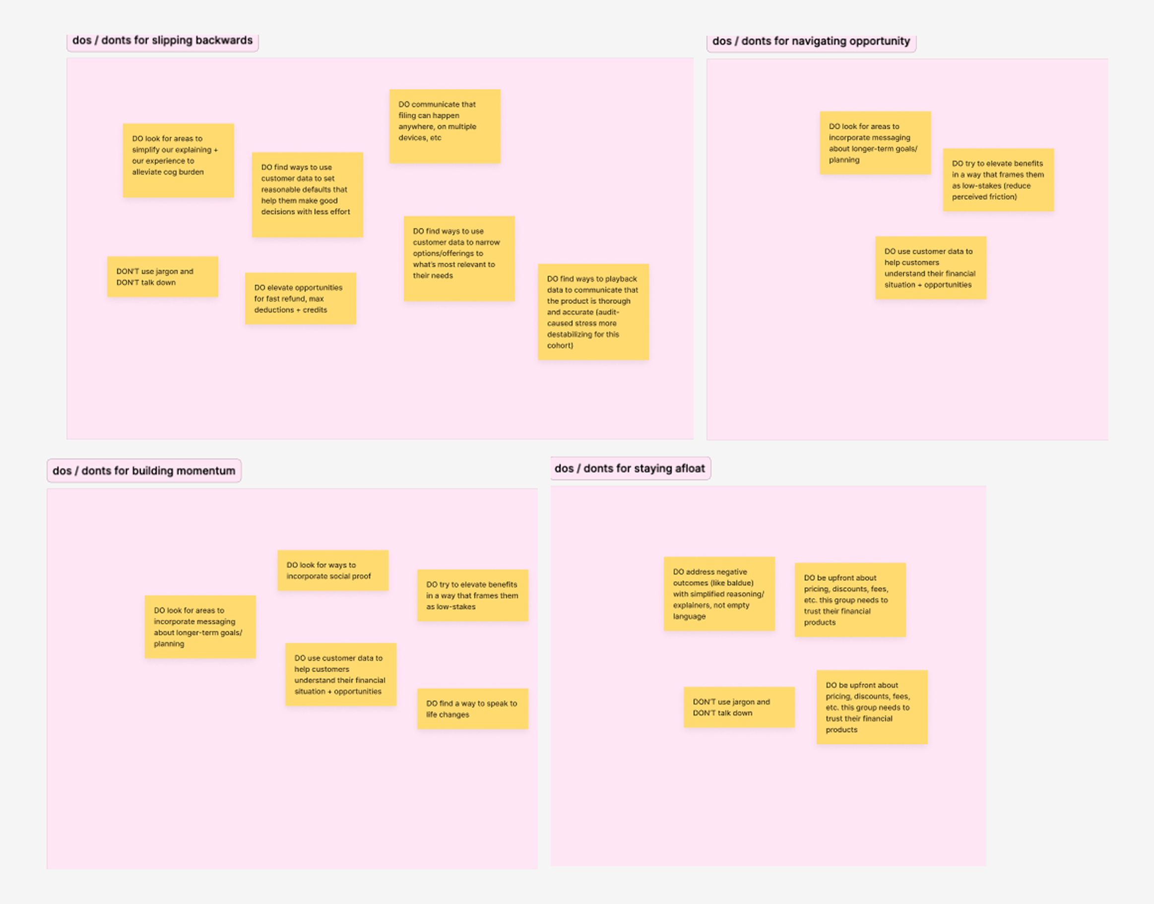 With this framework, we started to ideate on how to build trust with and empower these subgroups, and what to avoid.